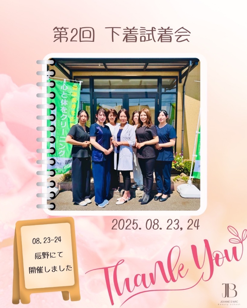 今回の試着会では、長野に新しくオープンした、辰野店にて、ジャンヌダルクビューティースクール学長、卒業生、現役講座生で皆様をお迎えさせていただきました。
