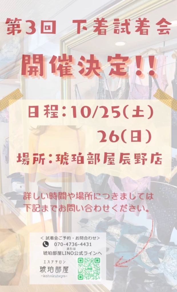 予約方法:公式ラインより「下着試着会参加希望」とご連絡下さい。